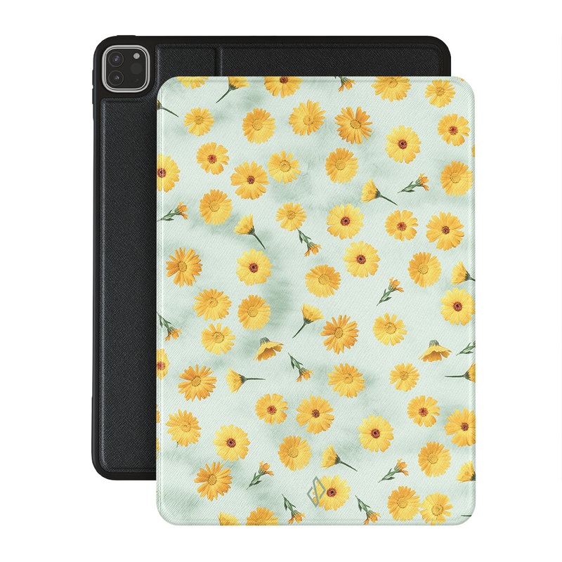 In our Sanctuary of Love iPad Pro 12.9 (6th/5th Gen) folio case, a soft mint marble meets a glowing pattern of yellow flowers that will surely add a splash of energy to your style while protecting your iPad from dangerous falls.